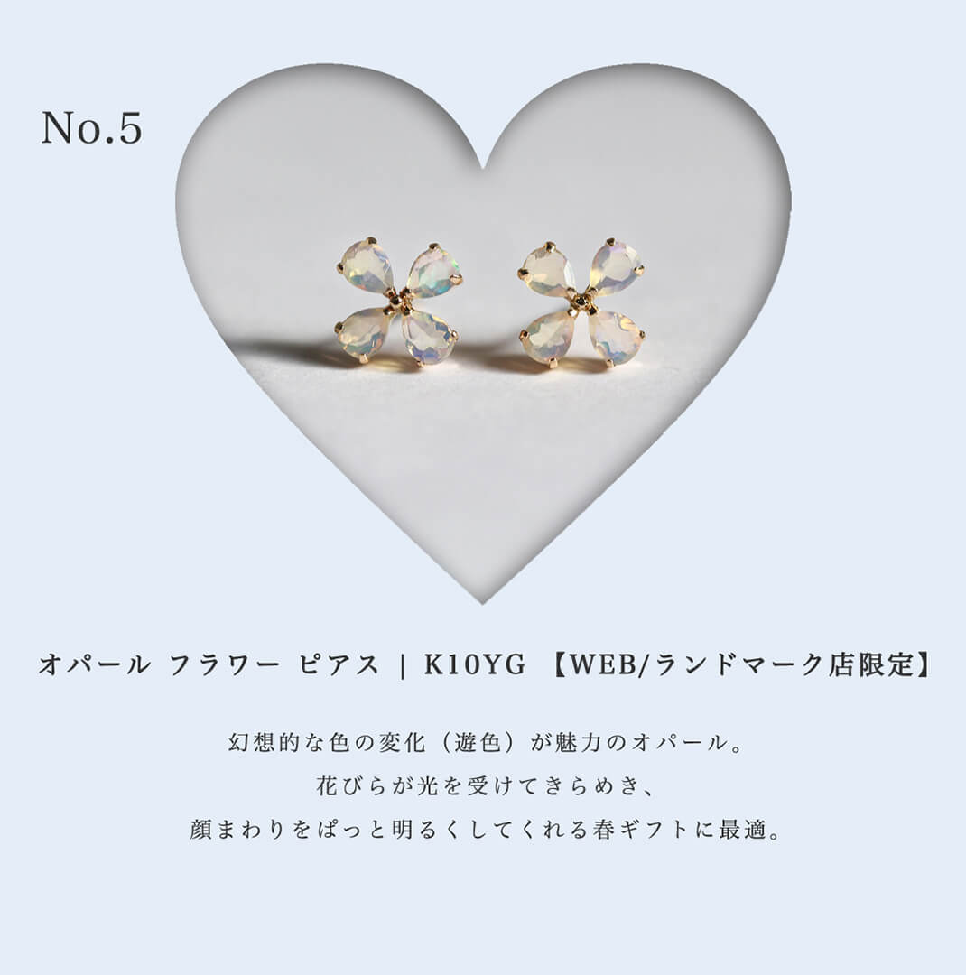 オパール フラワー ピアス | K10YG