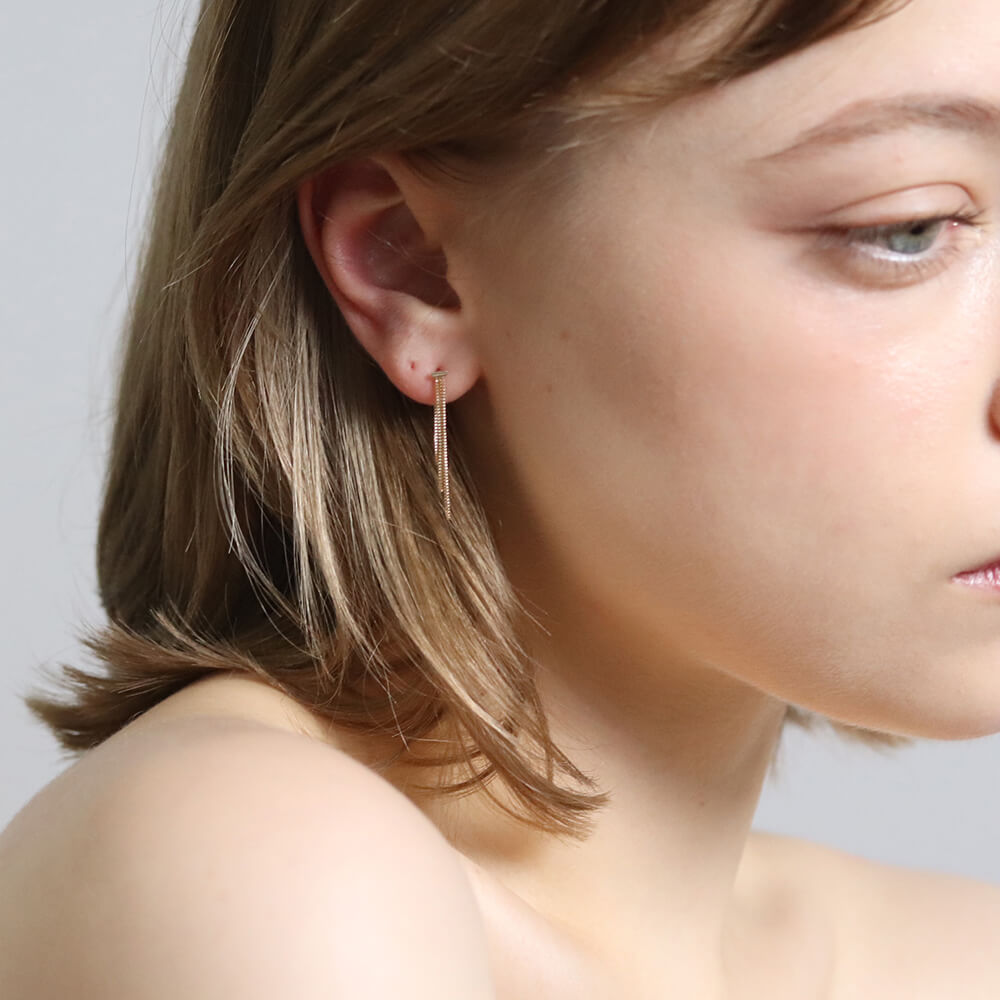 繊細でまっすぐな輝きを放つ、ベネチアンチェーンピアス。