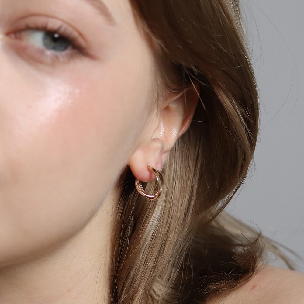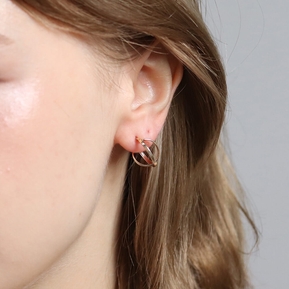 2本のゴールドラインが重なり合った、ほどよい存在感のあるフープピアス。