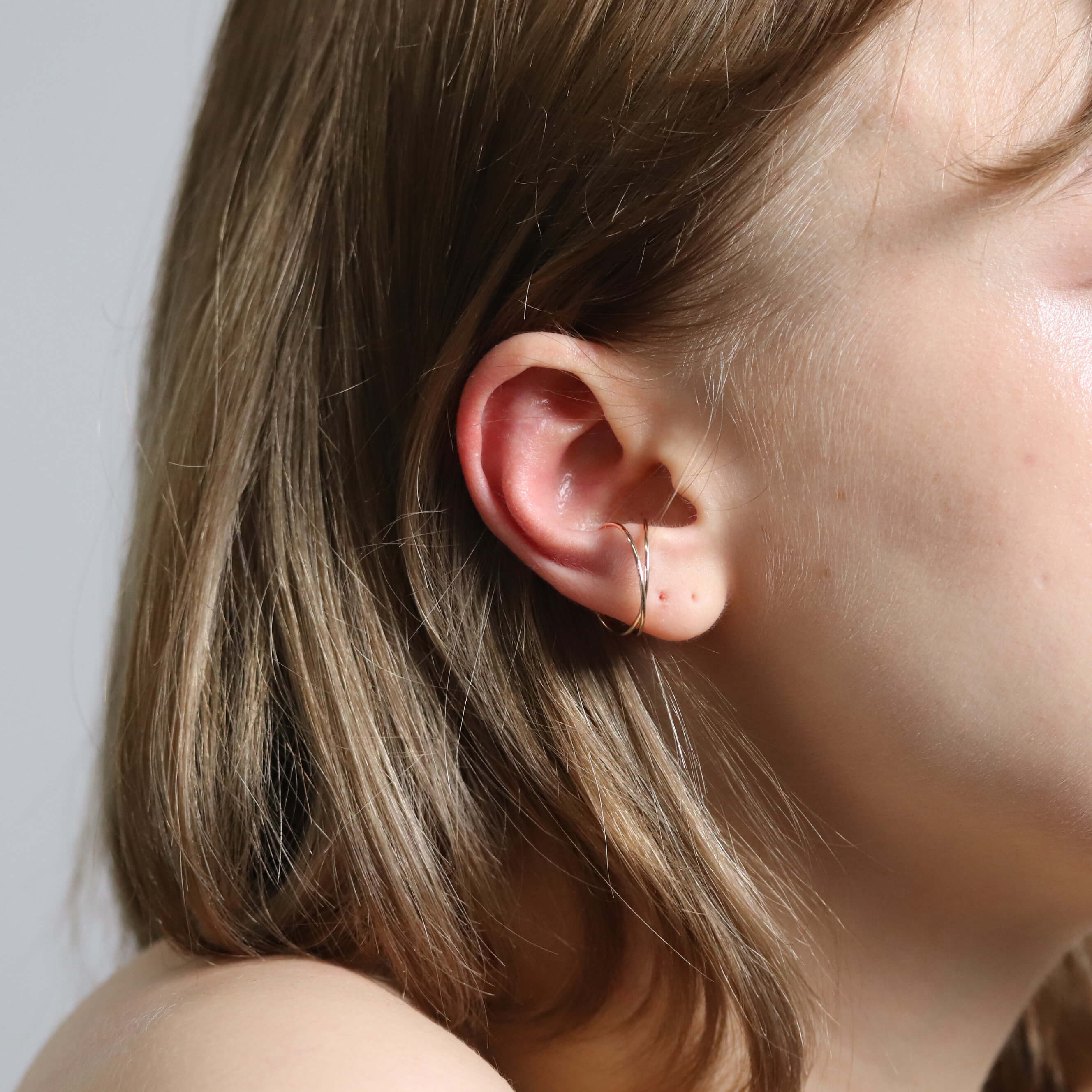 緩やかに自然な曲線を描くゴールドイヤーカフ。