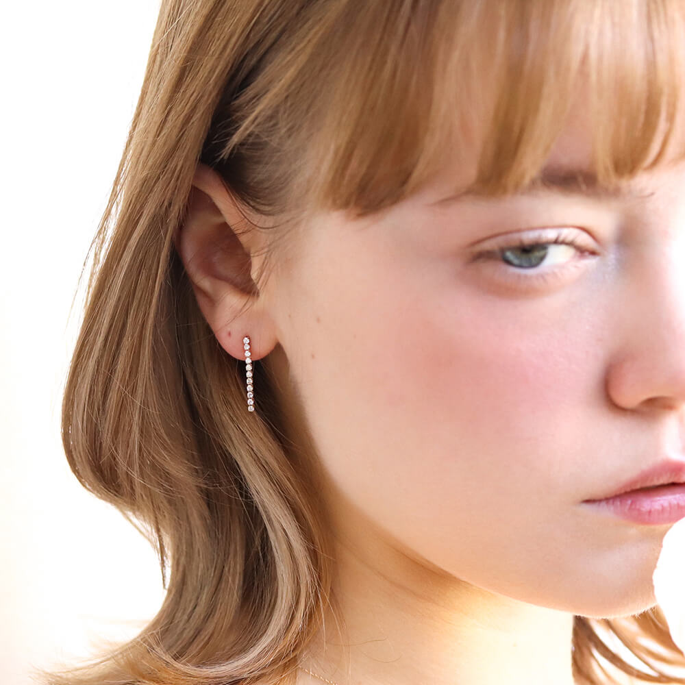 耳元で繊細に揺れる輝きが、女性らしいエレガンスを引き立てます。