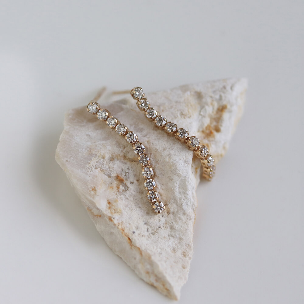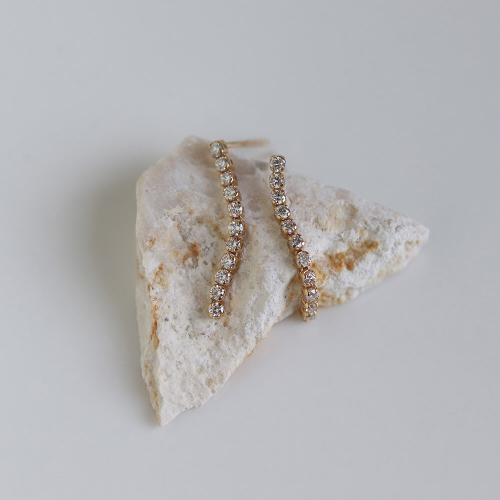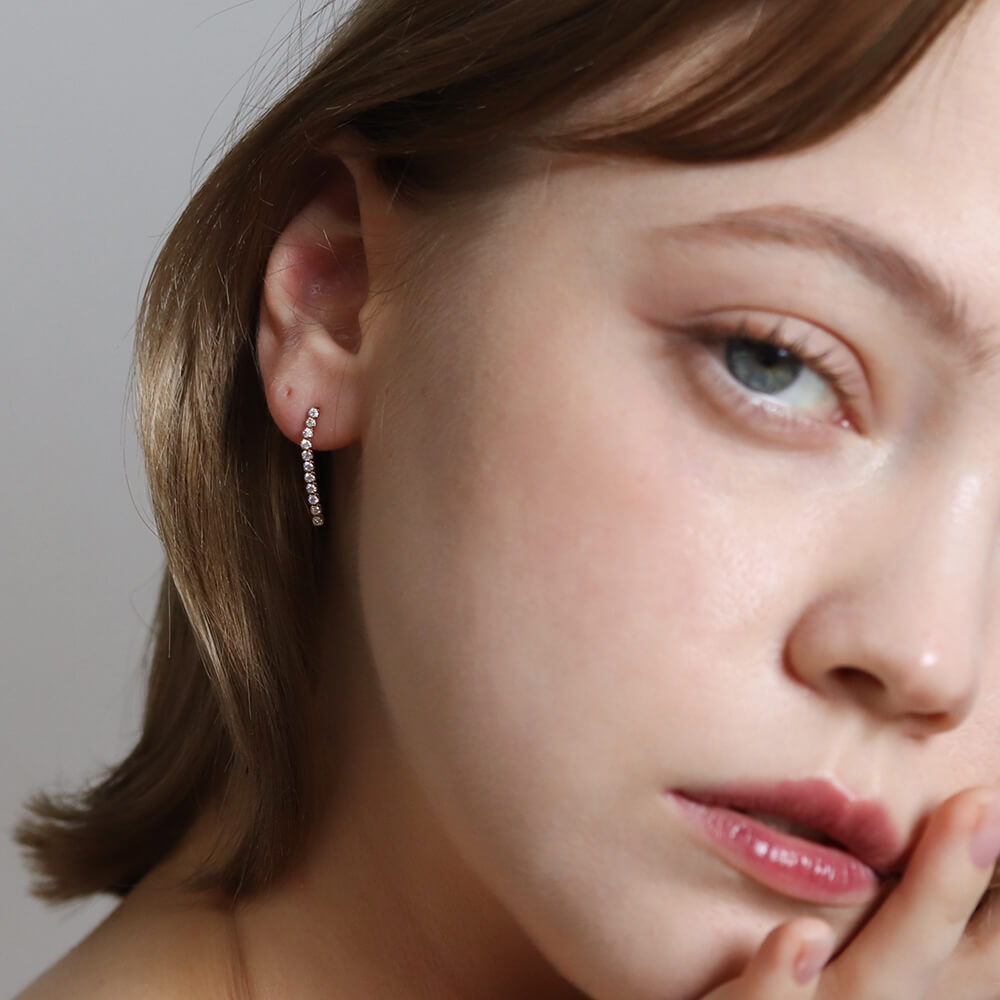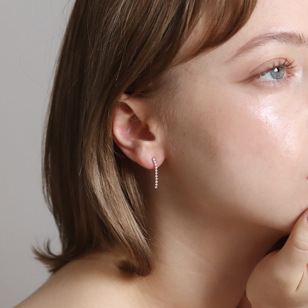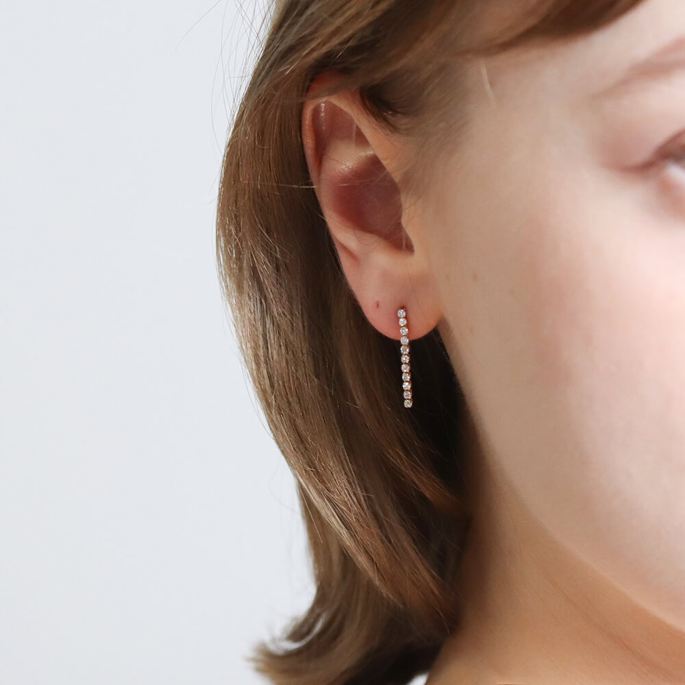 しなやかなラインにダイヤモンドを贅沢にあしらった、ダイヤモンドロングテニスピアス。