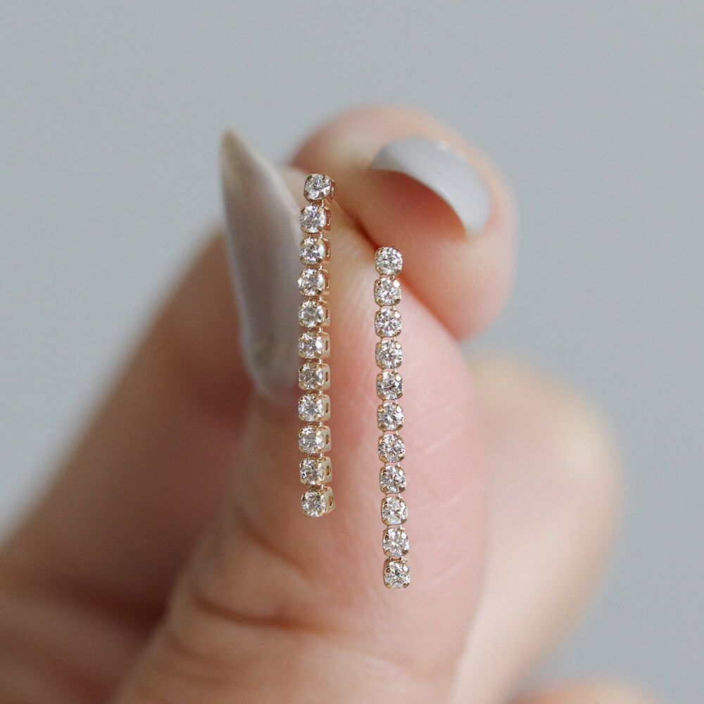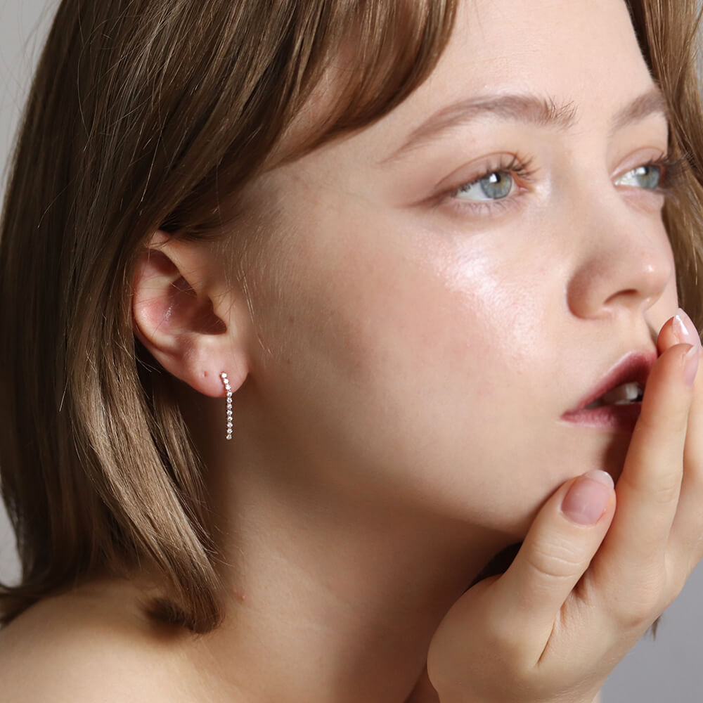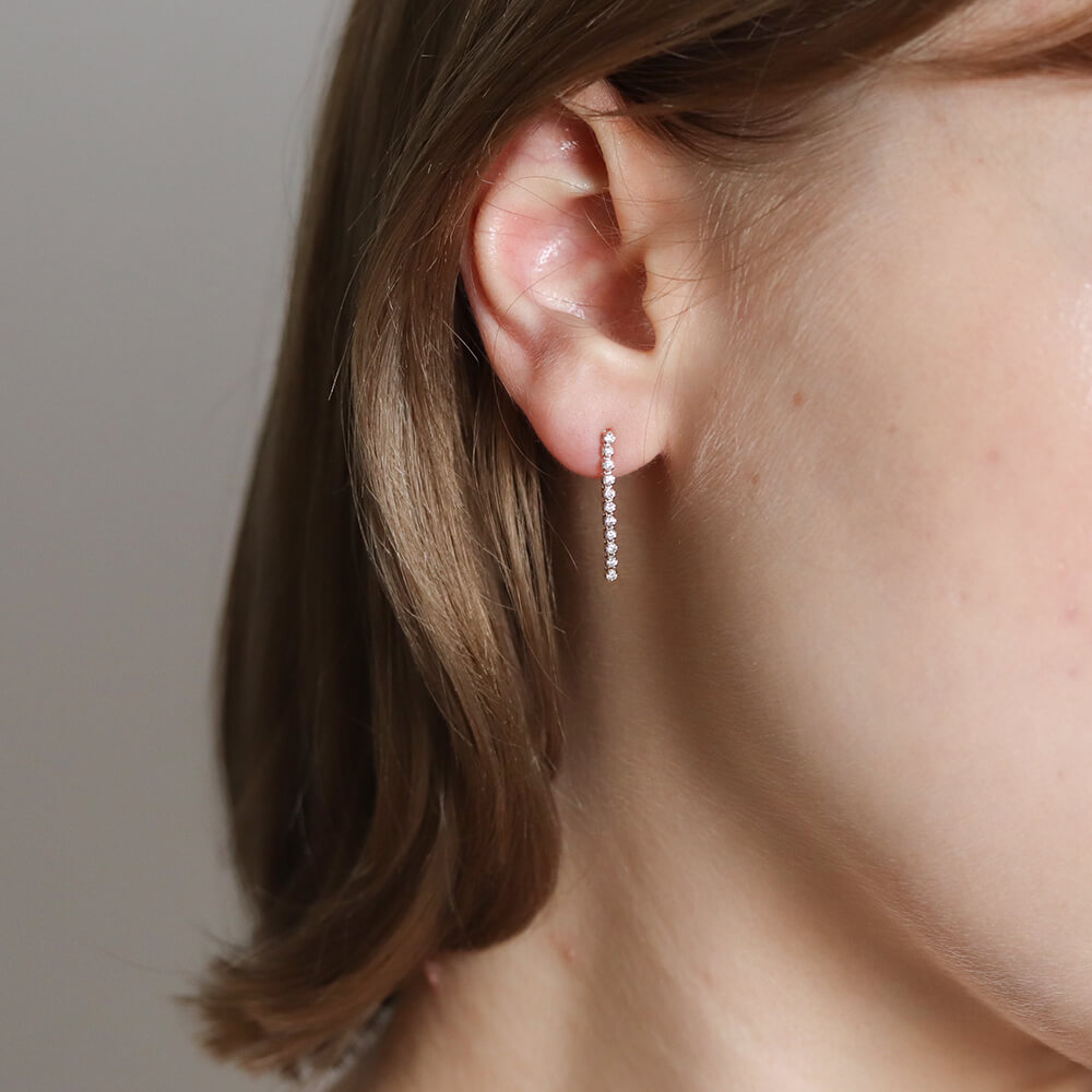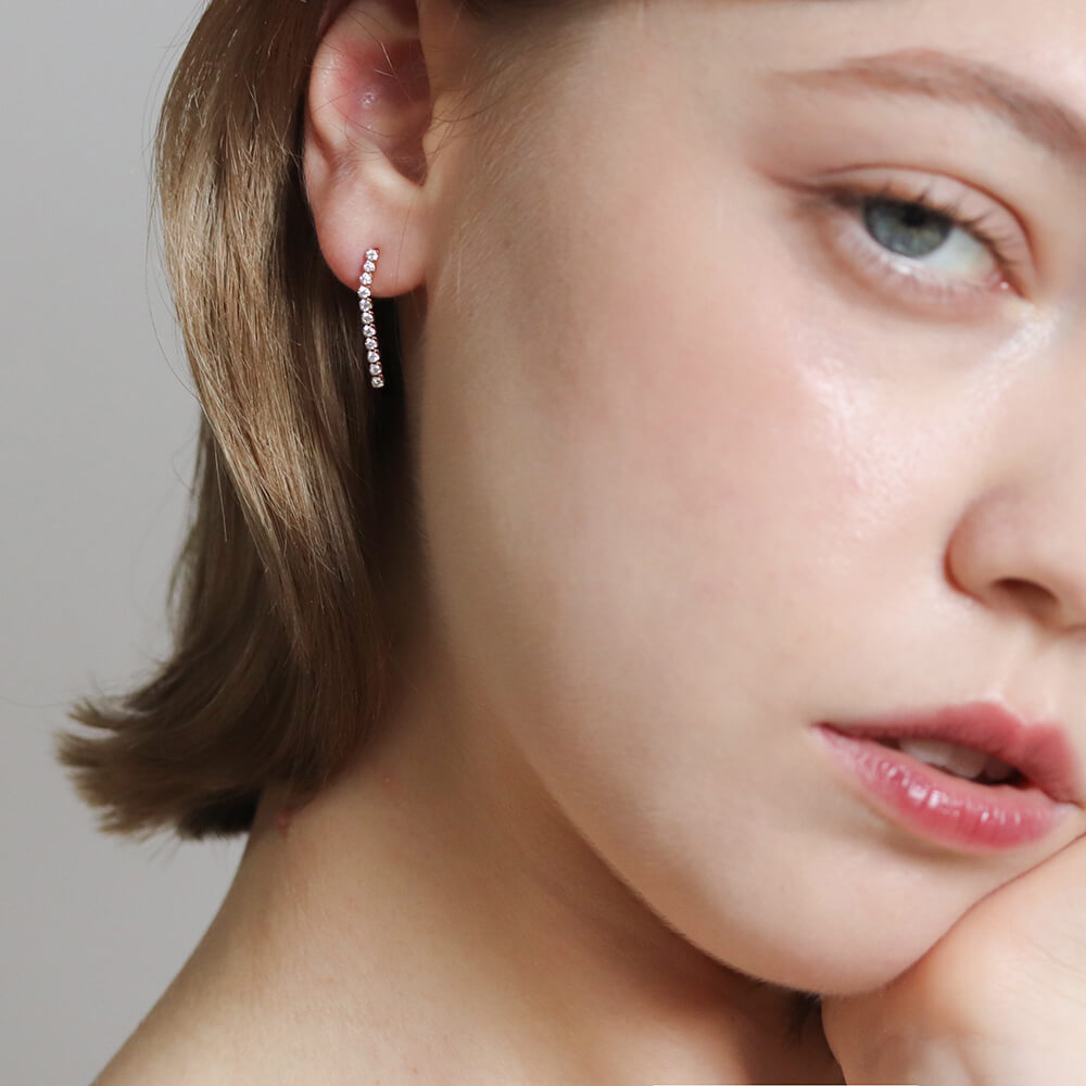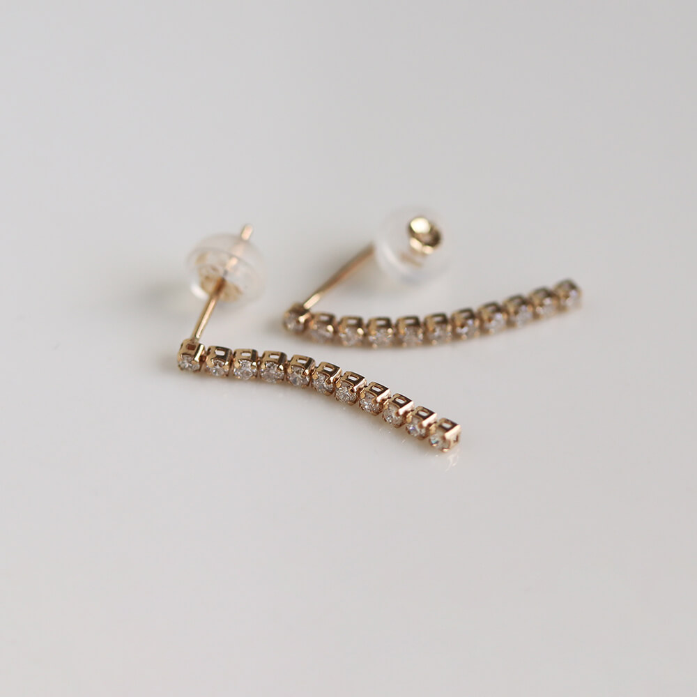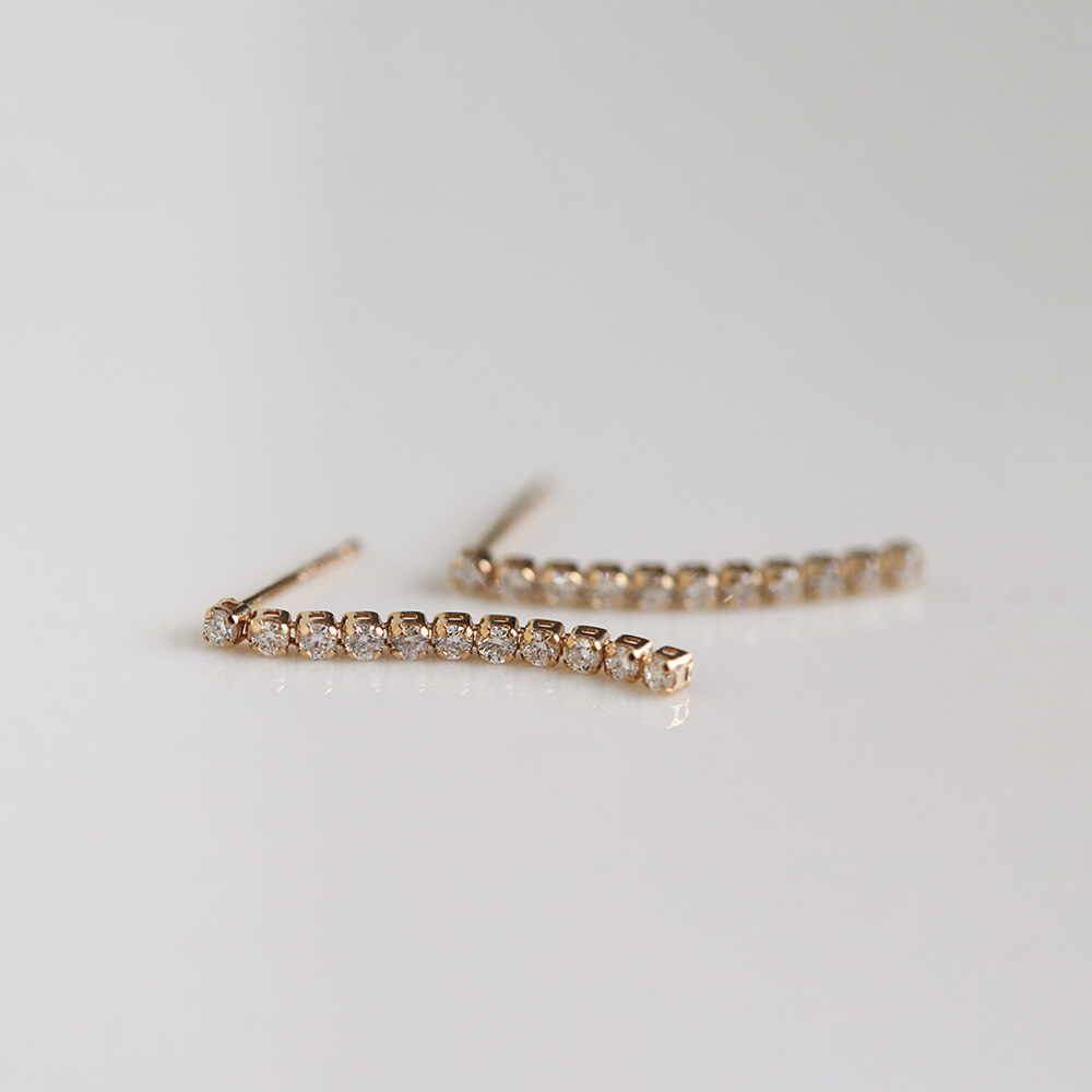 しなやかなラインにダイヤモンドを贅沢にあしらった、ダイヤモンドロングテニスピアス。