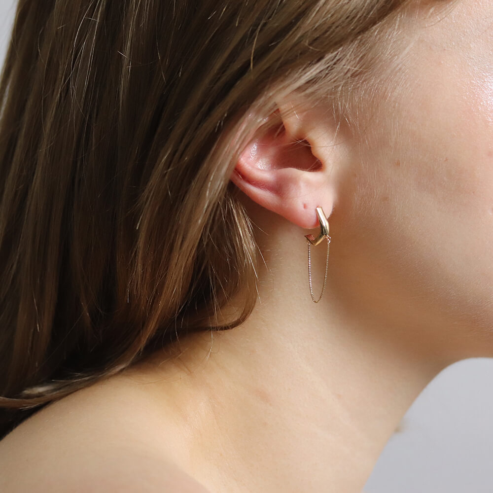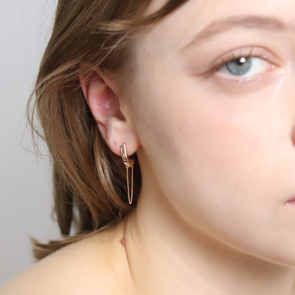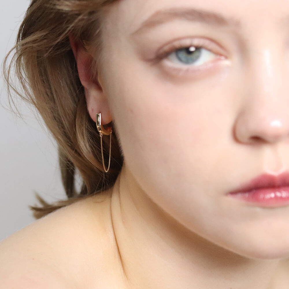 上品な揺れ感を見せるベネチアンチェーンが魅力的なゴールドピアス。