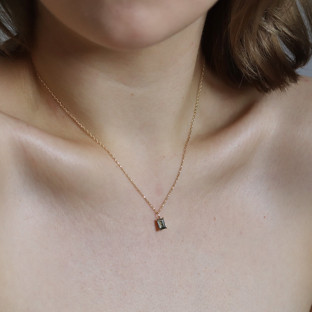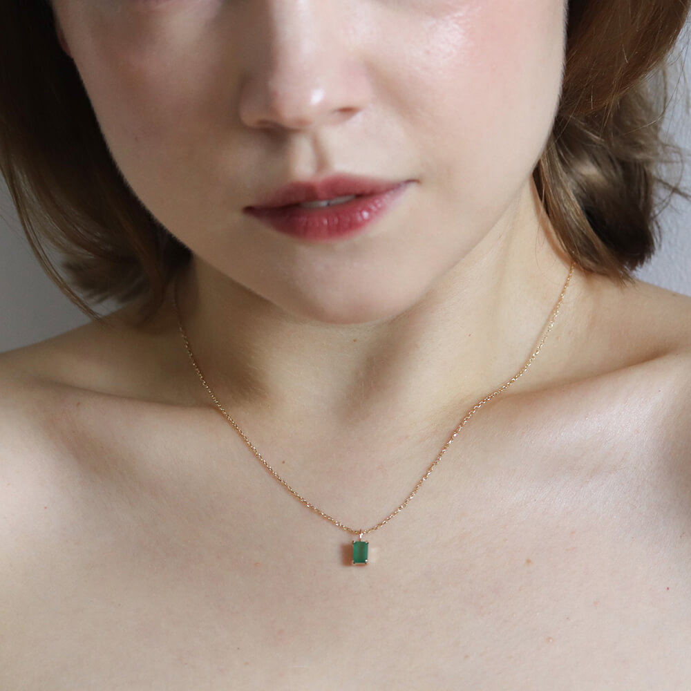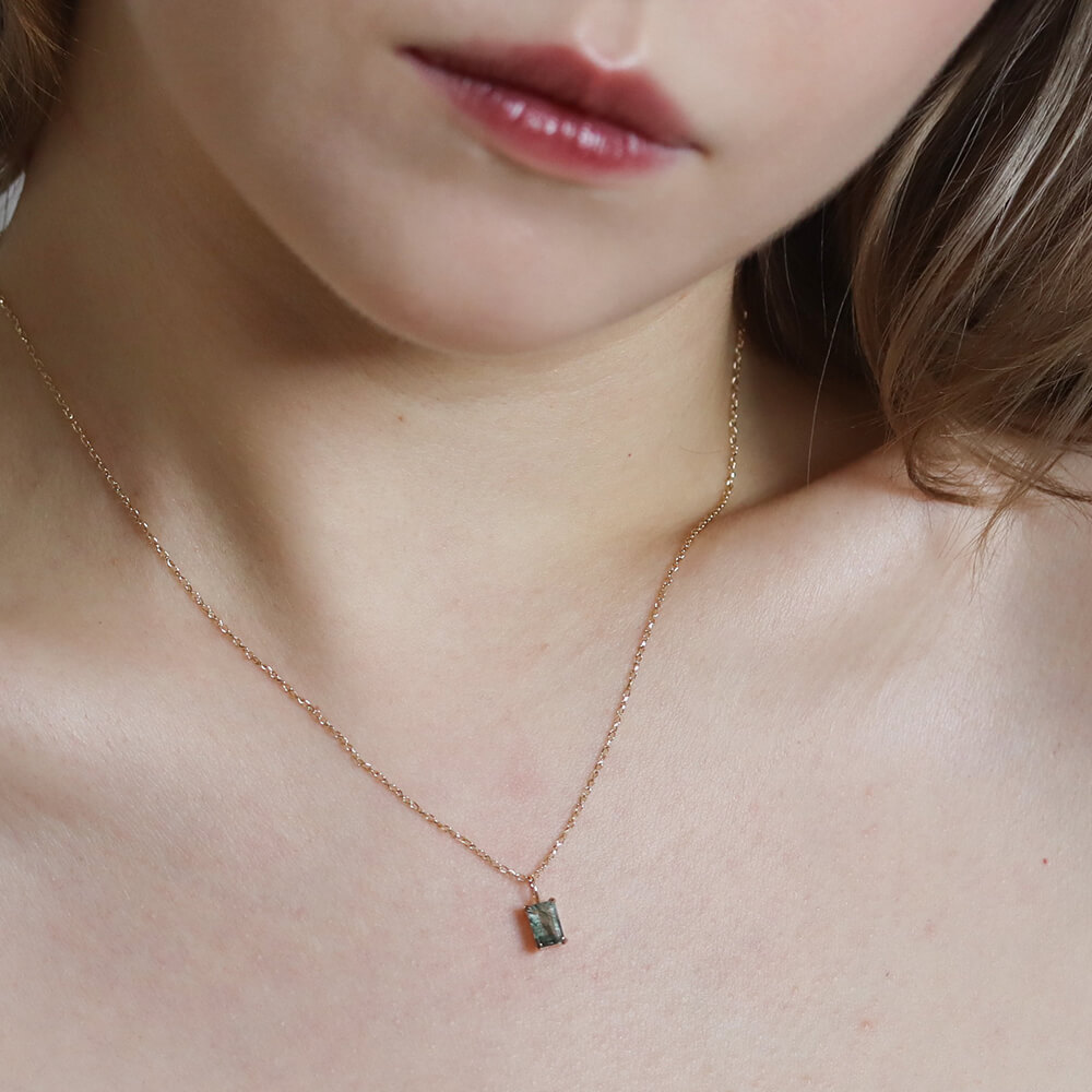 オクタゴンカットのシャープなフォルム、直線的なラインが光をを反射し、石の表情に奥行きをもたらします。