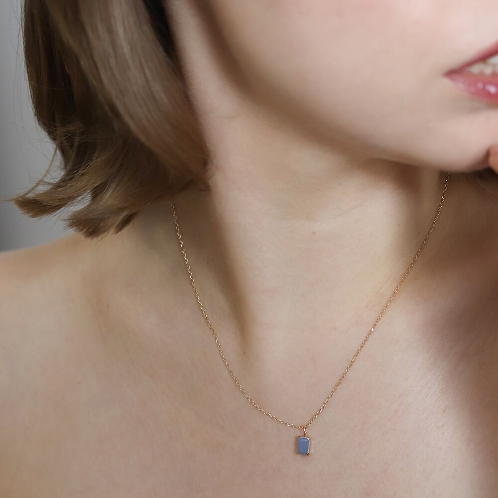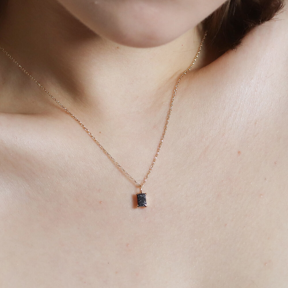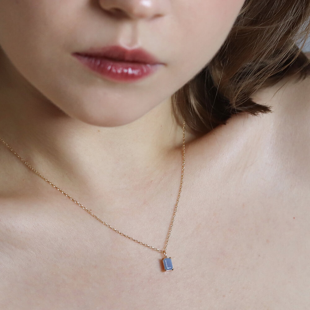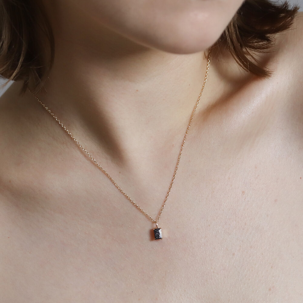 オクタゴンカットのシャープなフォルム、直線的なラインが光をを反射し、石の表情に奥行きをもたらします。