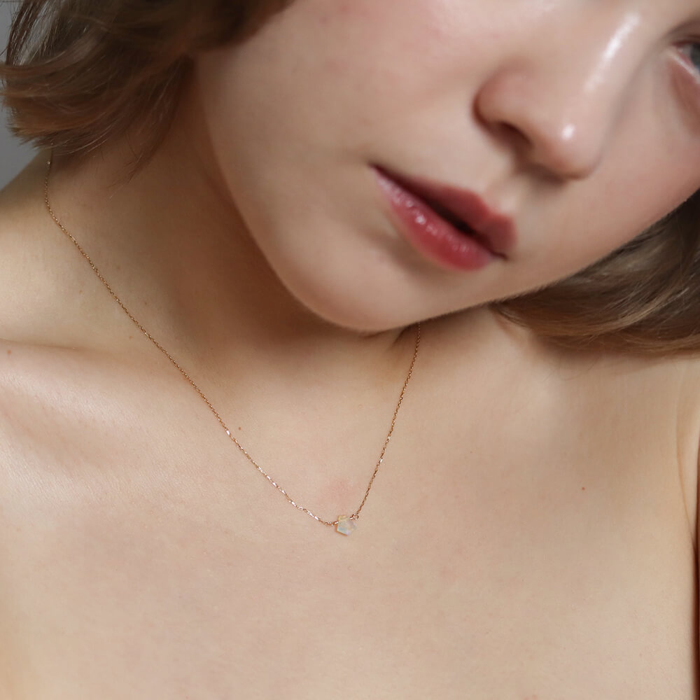 光を閉じ込めたような、やわらかな輝きのオパールネックレス。