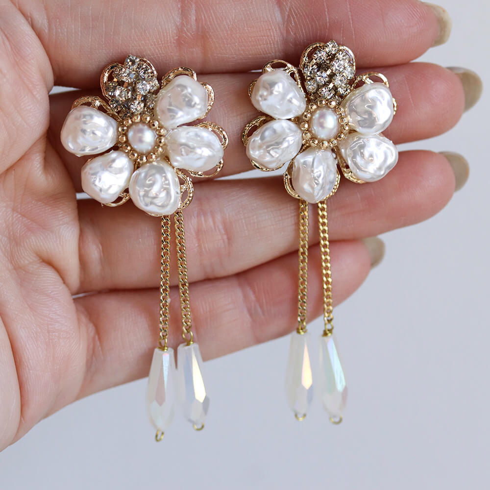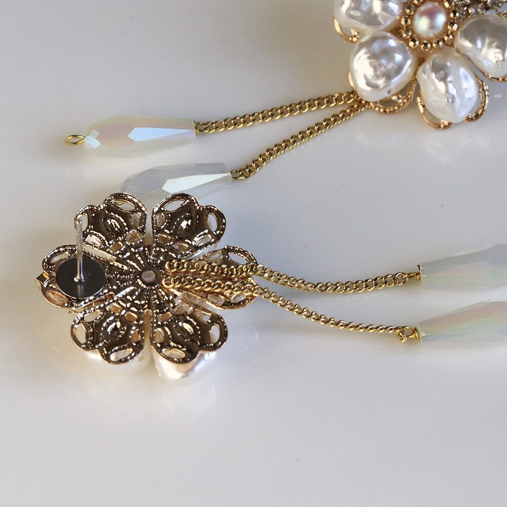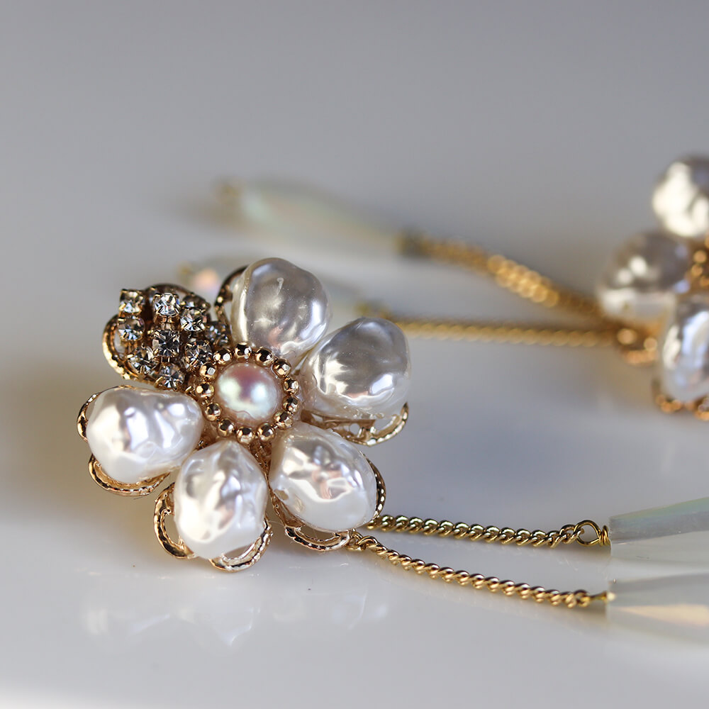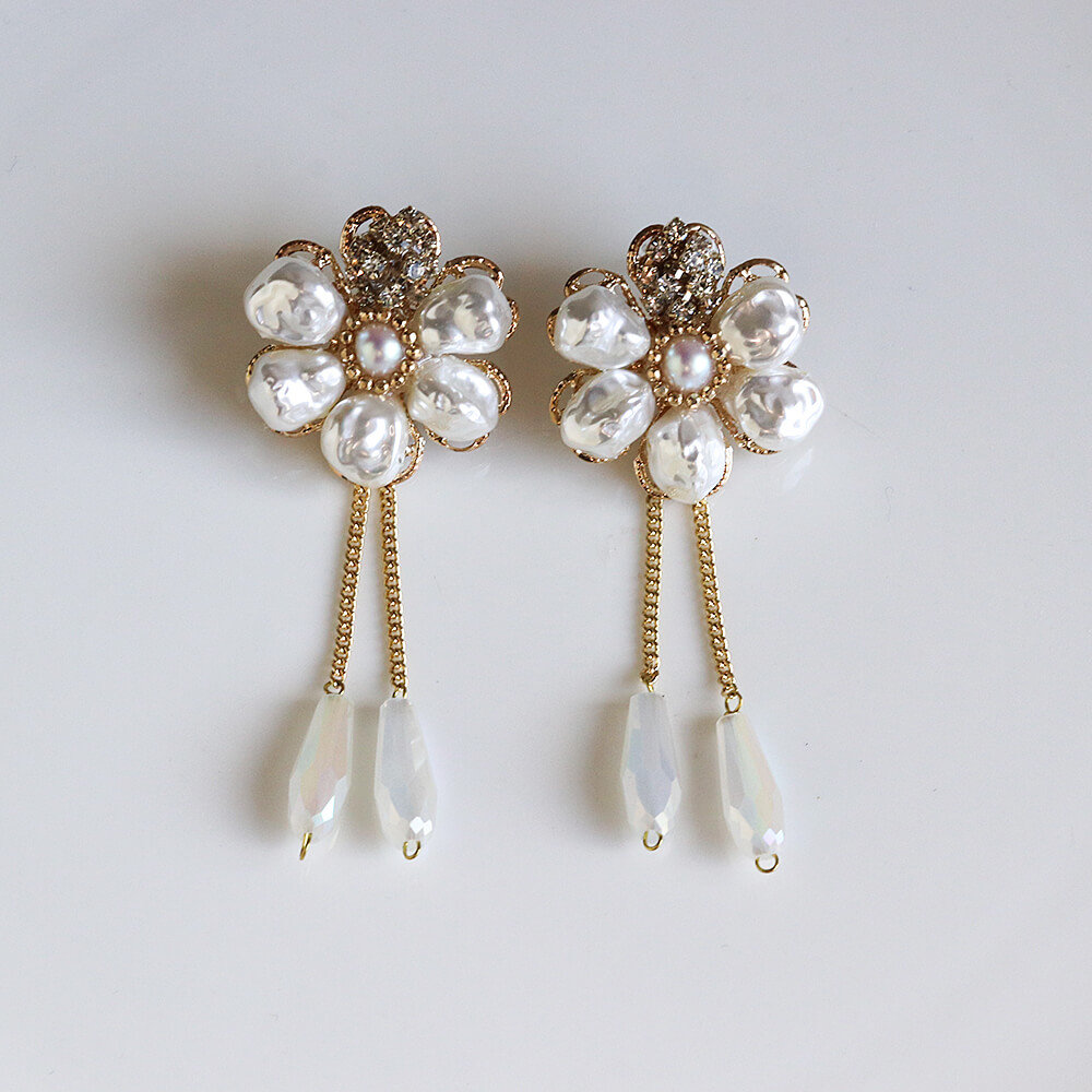 パール / クリスタル フラワー ピアス