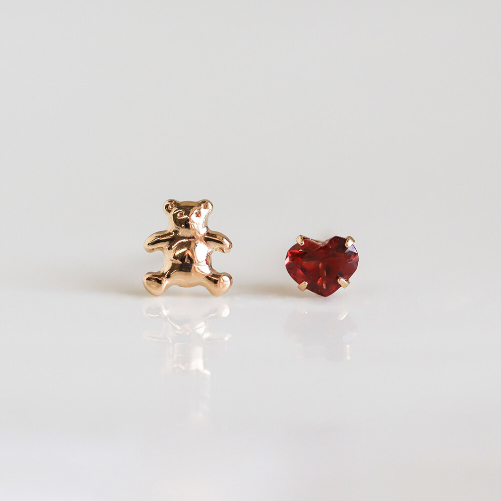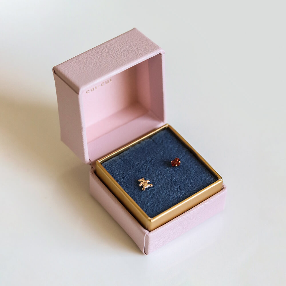 小さなベアがそっと寄り添うようにきらめくベアピアス。