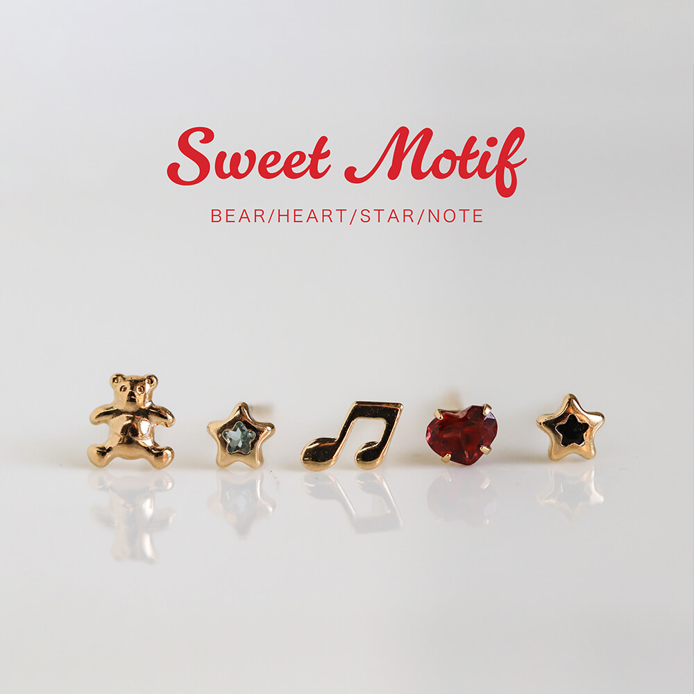 ミニマルなサイズながら、表情のあるフォルムが耳元に可憐な印象を与えます。