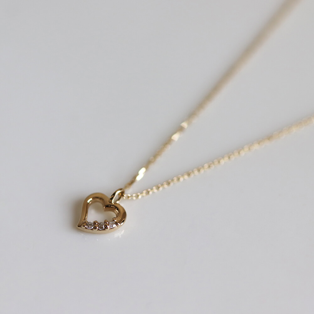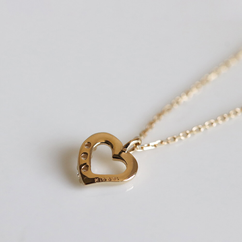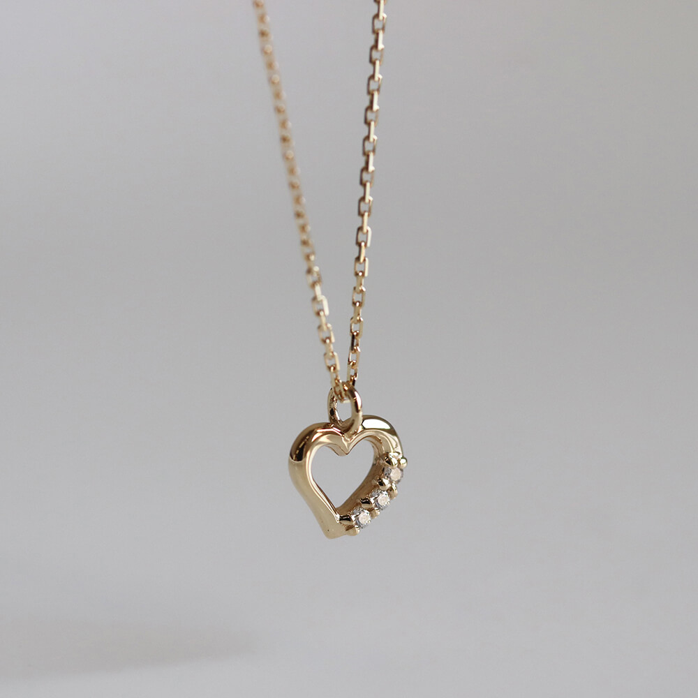 ハートモチーフに、3石のダイヤがあしらわれたネックレス。