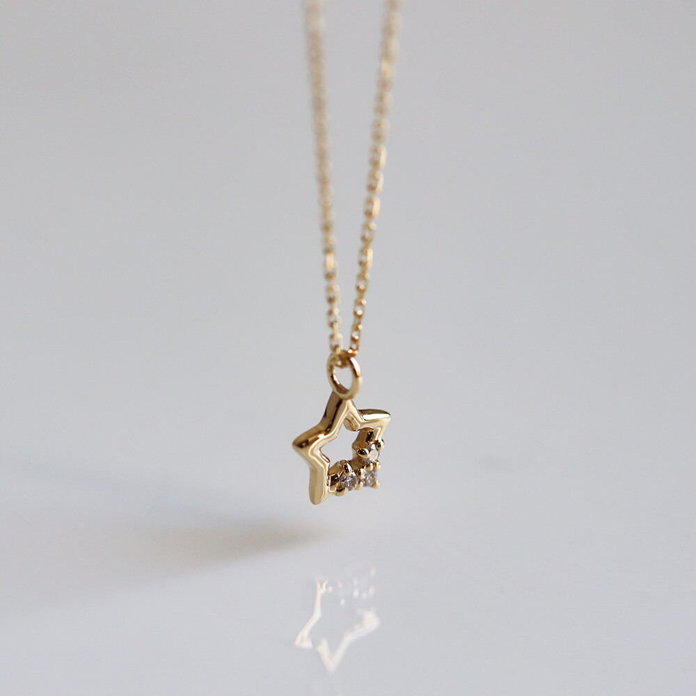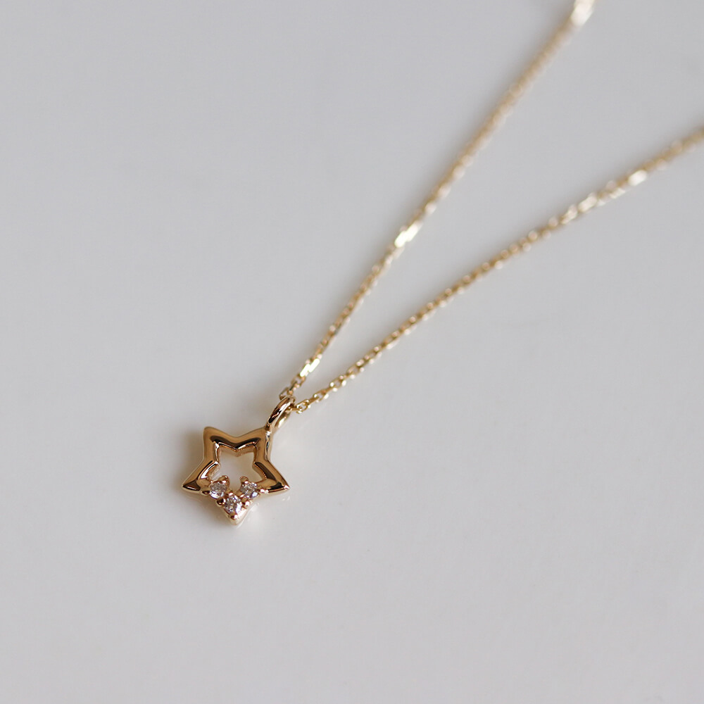スターモチーフに、3石のダイヤがあしらわれたネックレス。