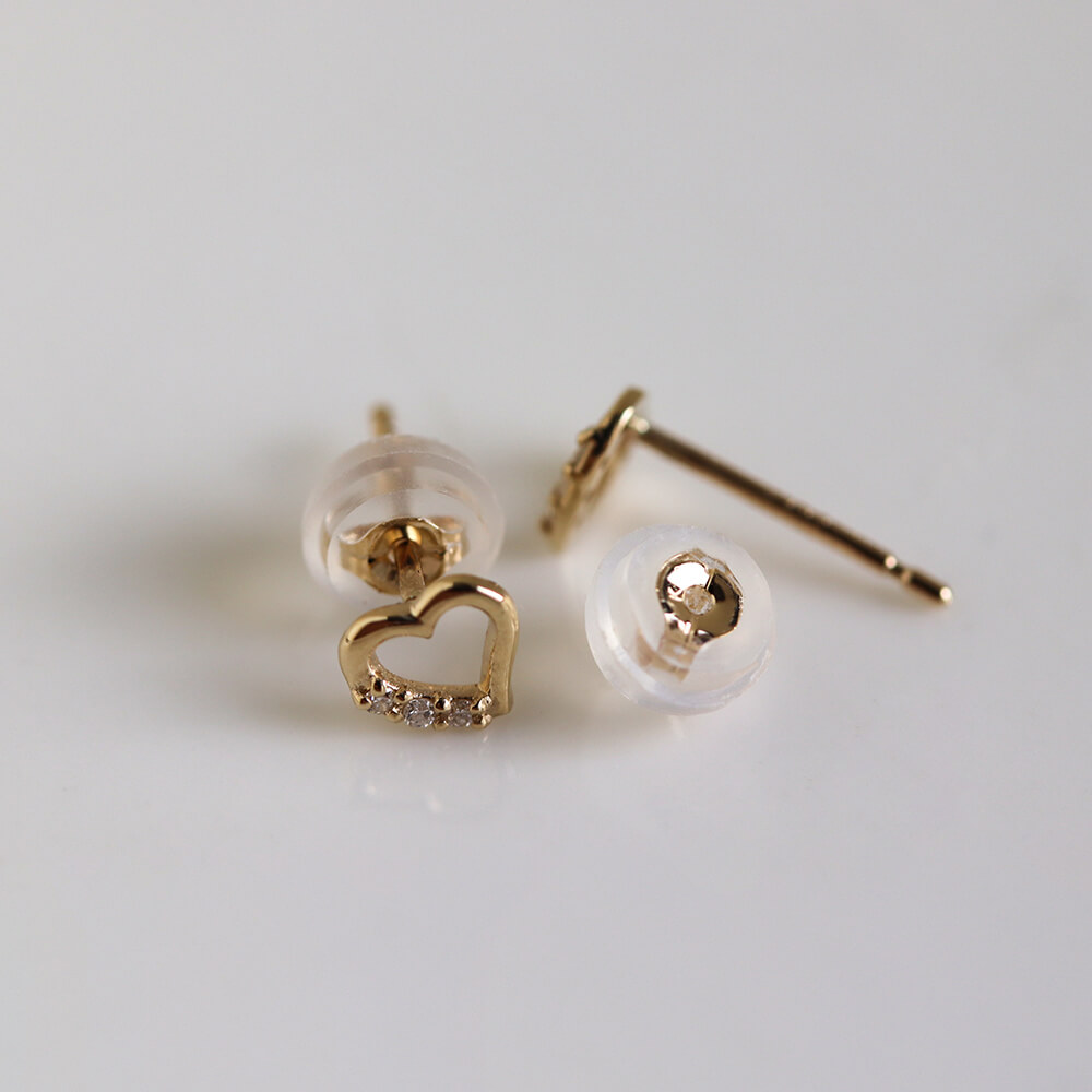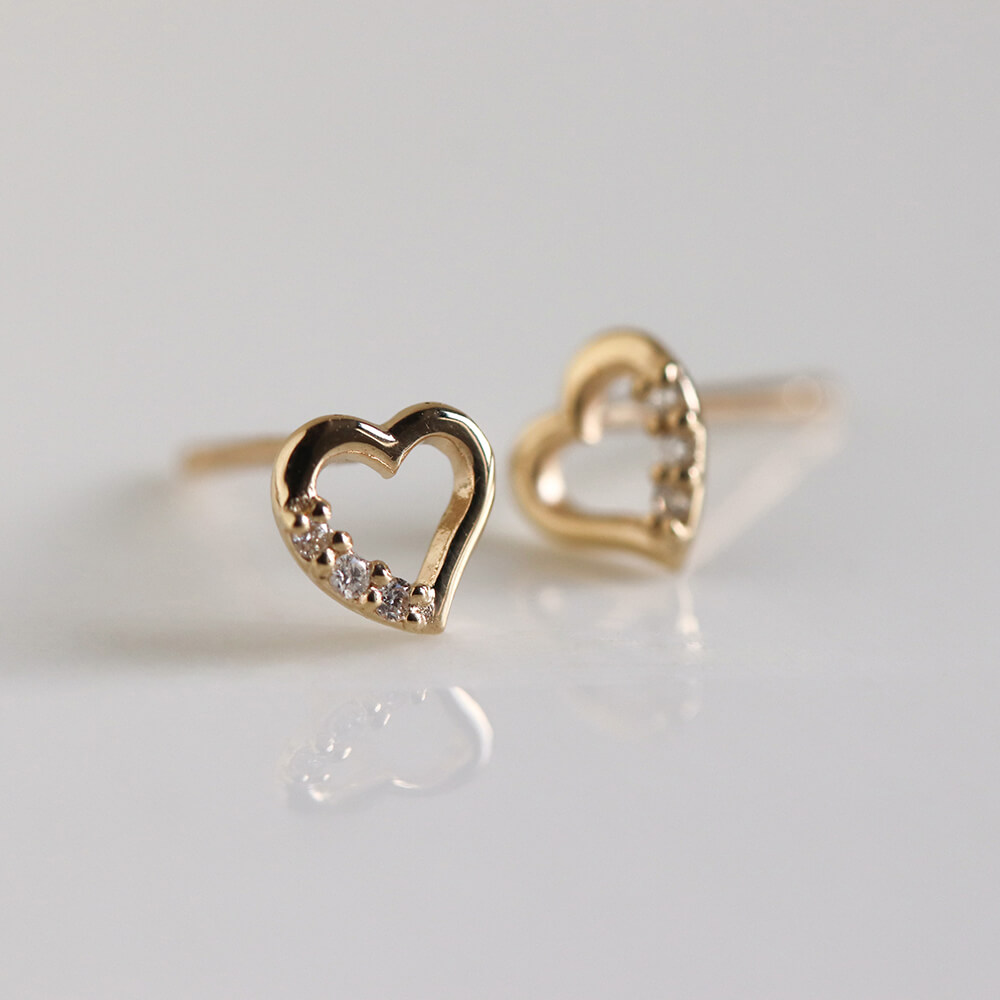 ハートモチーフに、3石のダイヤがあしらわれたピアス。