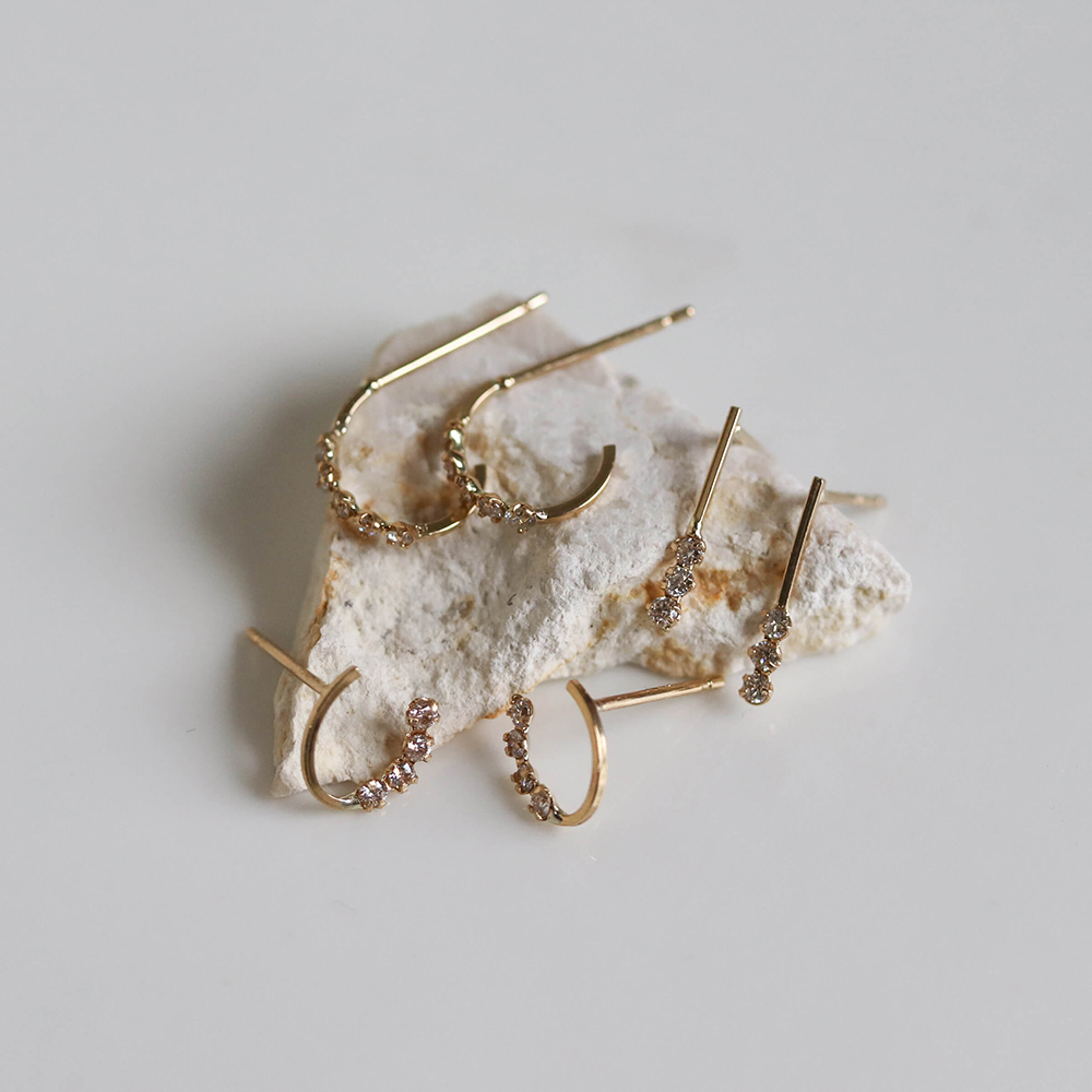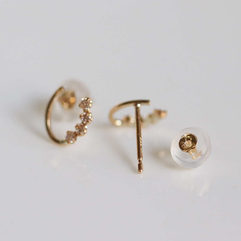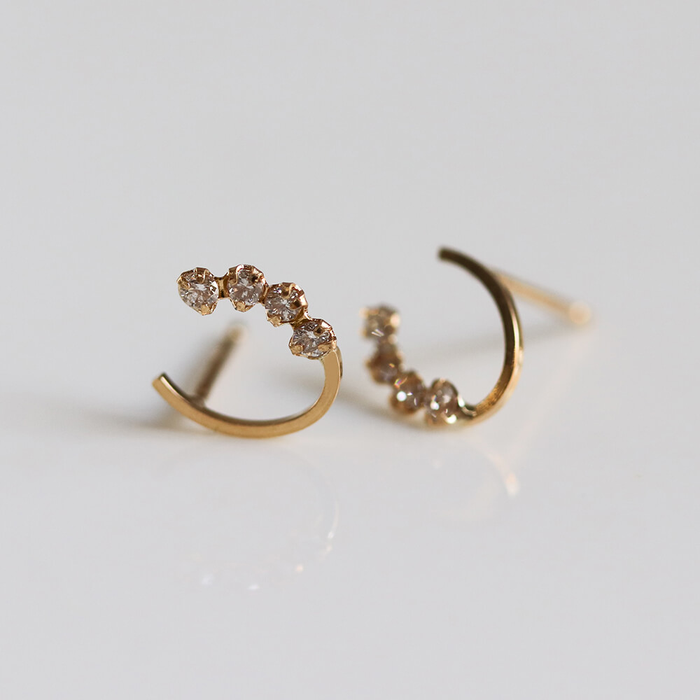 細身のゴールドで描いたホースシューモチーフに、4石のダイヤをあしらったピアス。