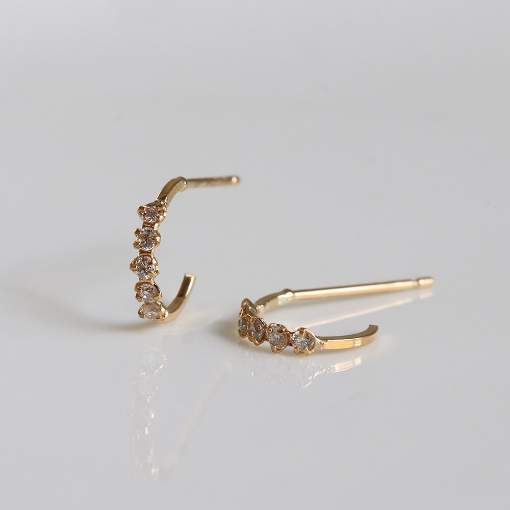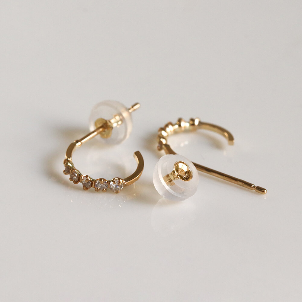 細身のゴールドで描いたホースシューモチーフに、4石のダイヤをあしらったピアス。