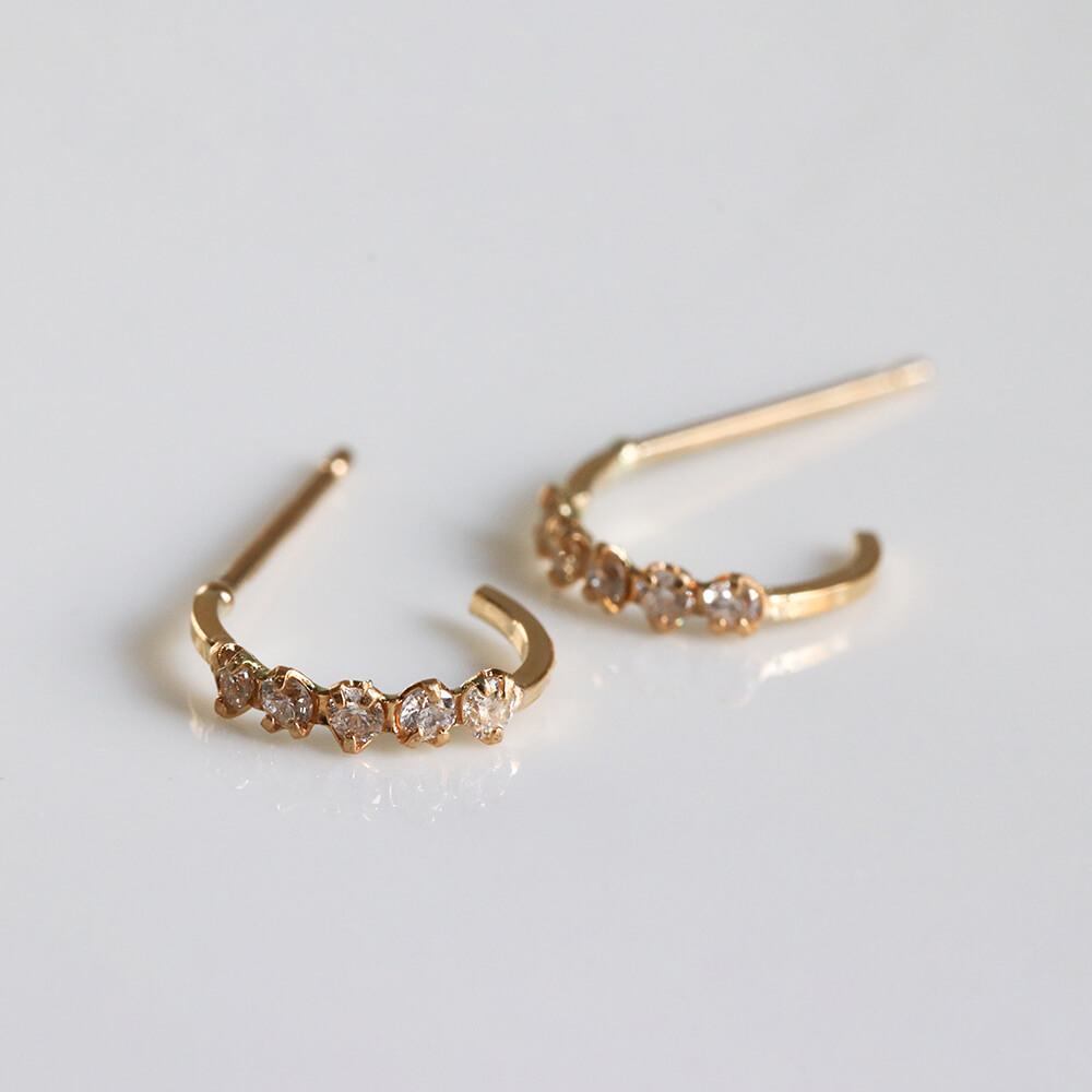 ゴールドのフープに、ダイヤを5石あしらったスタッドピアス。