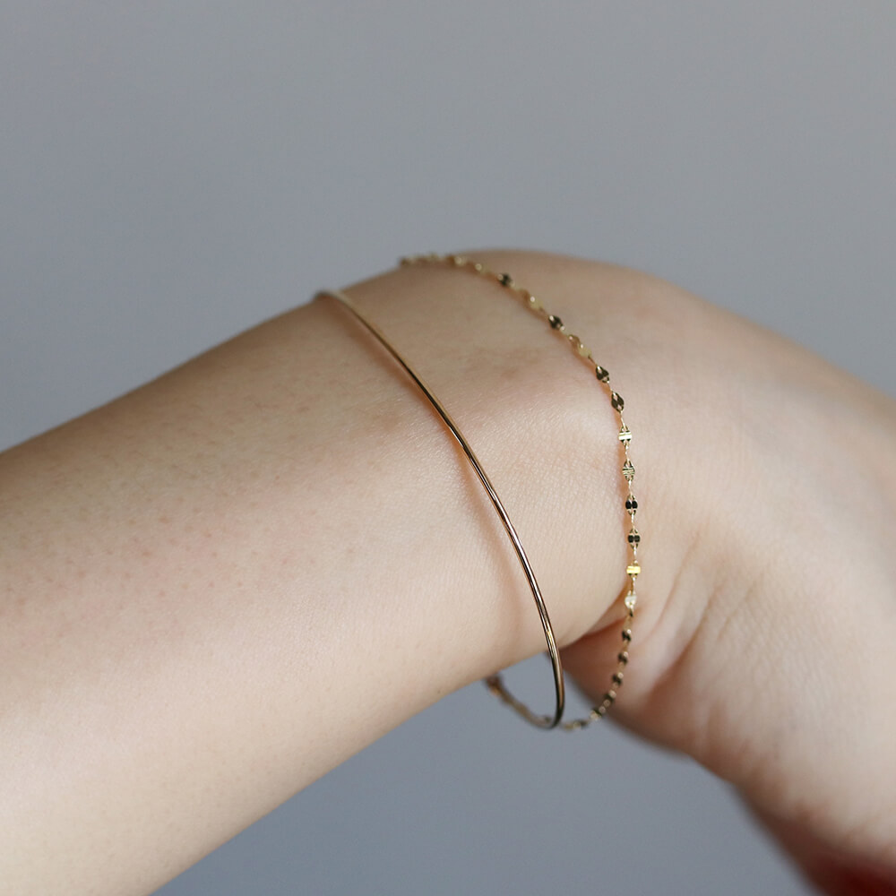 煌めきを見せるエクレアチェーンが魅力的なゴールドバングル。