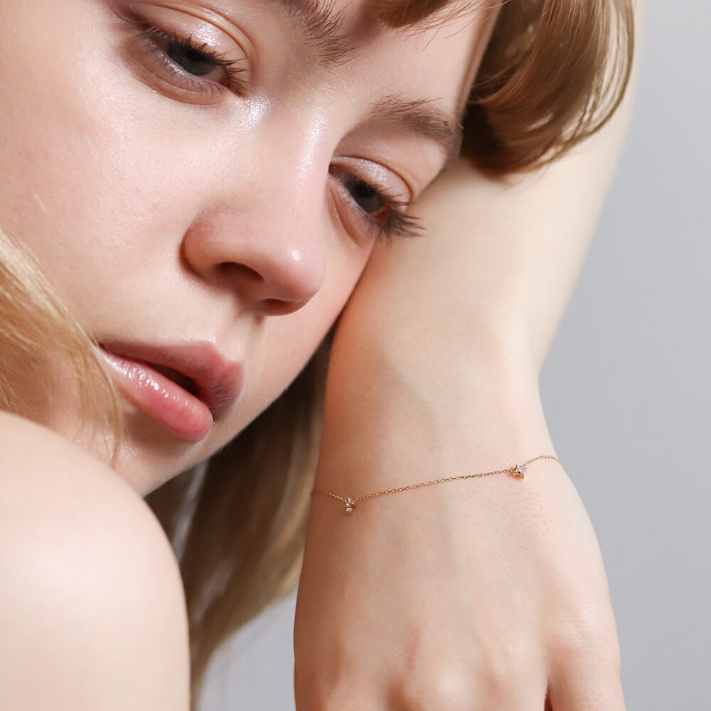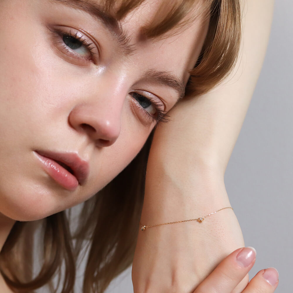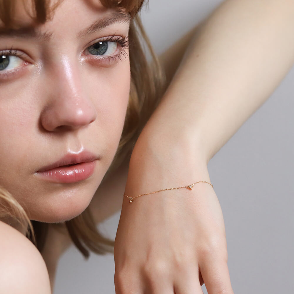夜空に瞬く星のように、すっきりと澄んだ輝きを放つ3石のダイヤモンドブレスレット。