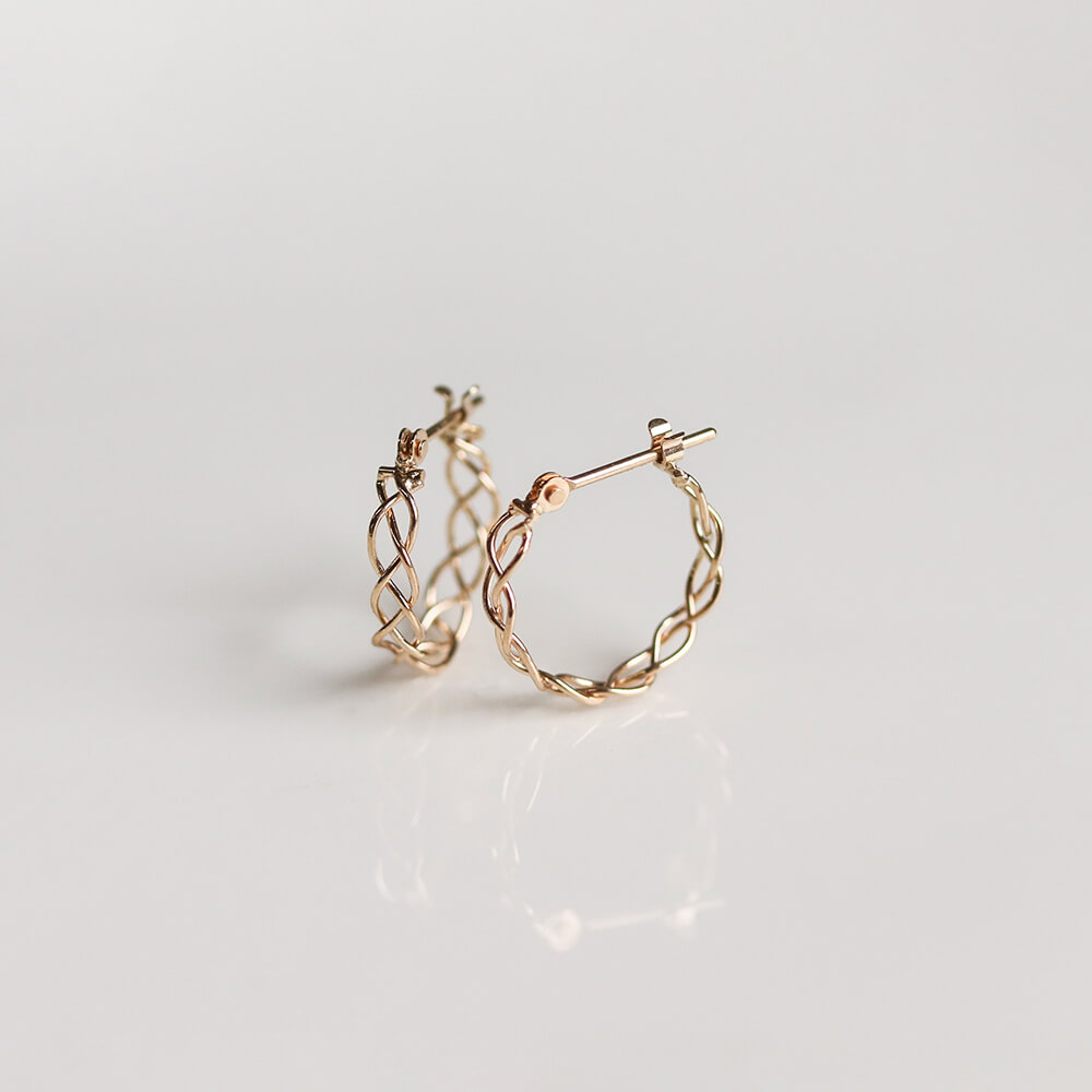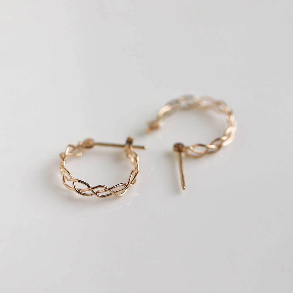 華奢なゴールドラインを丁寧に編み込んだフープピアス。