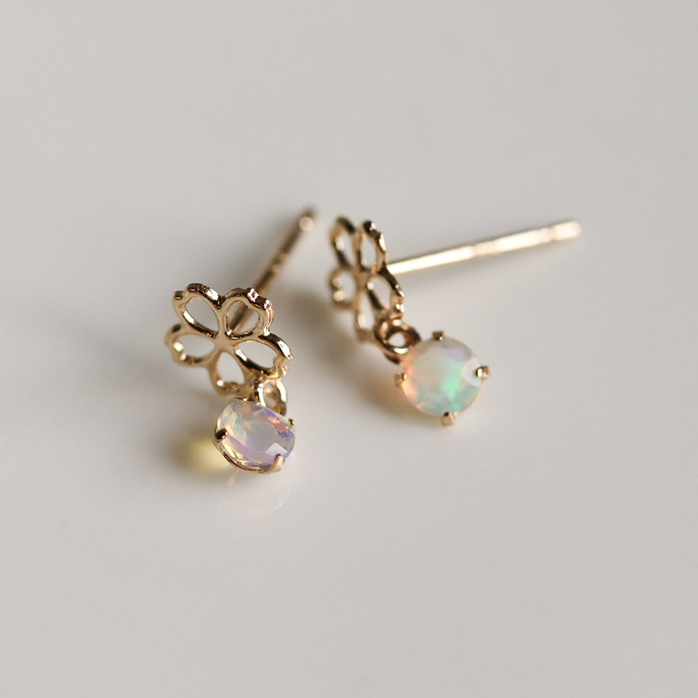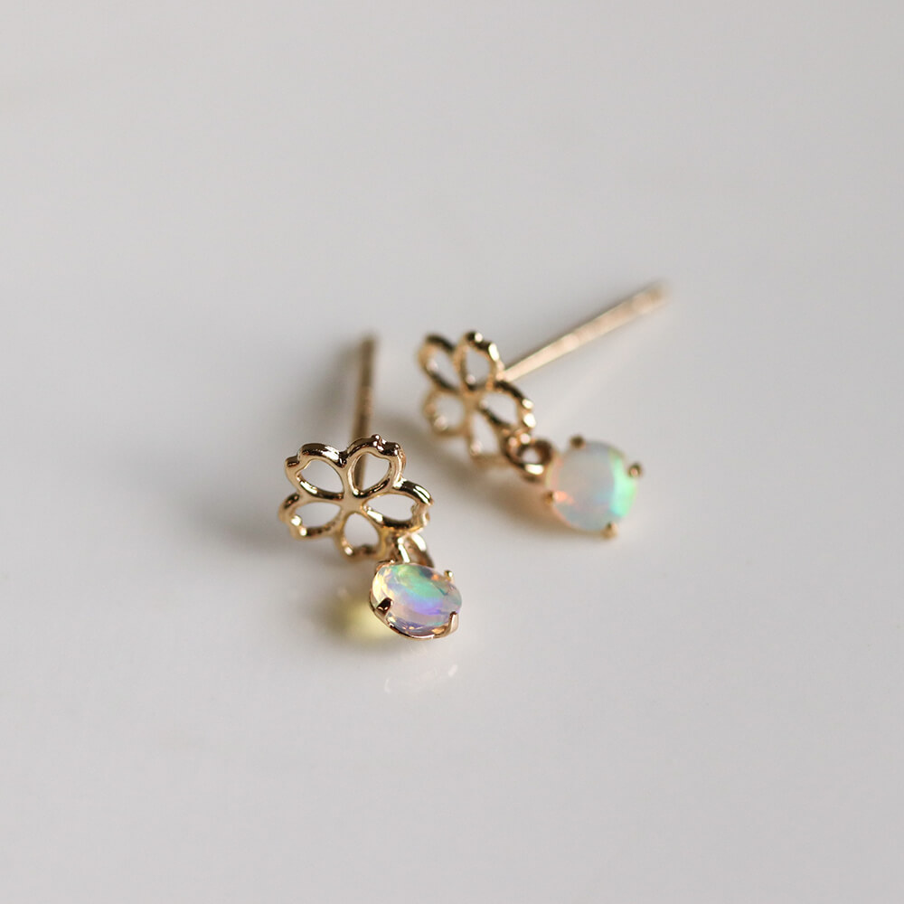 サクラモチーフに揺れるオパールが印象的なピアス。