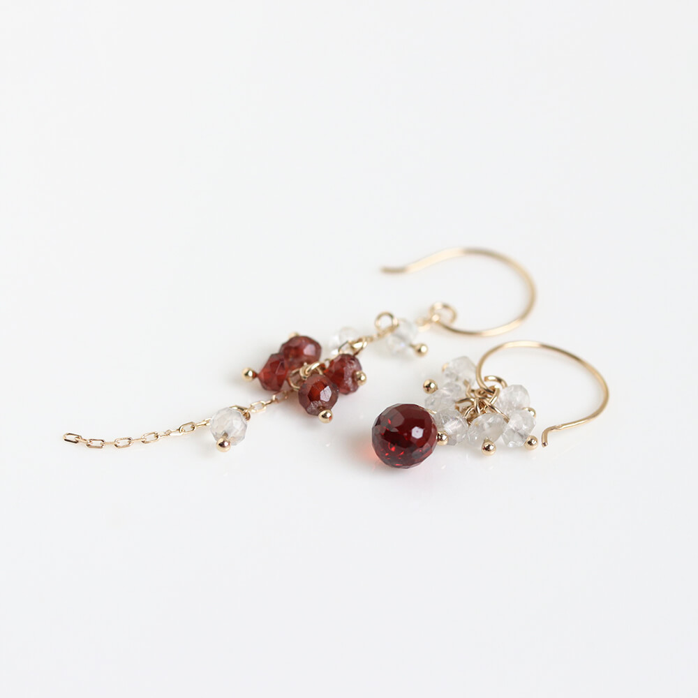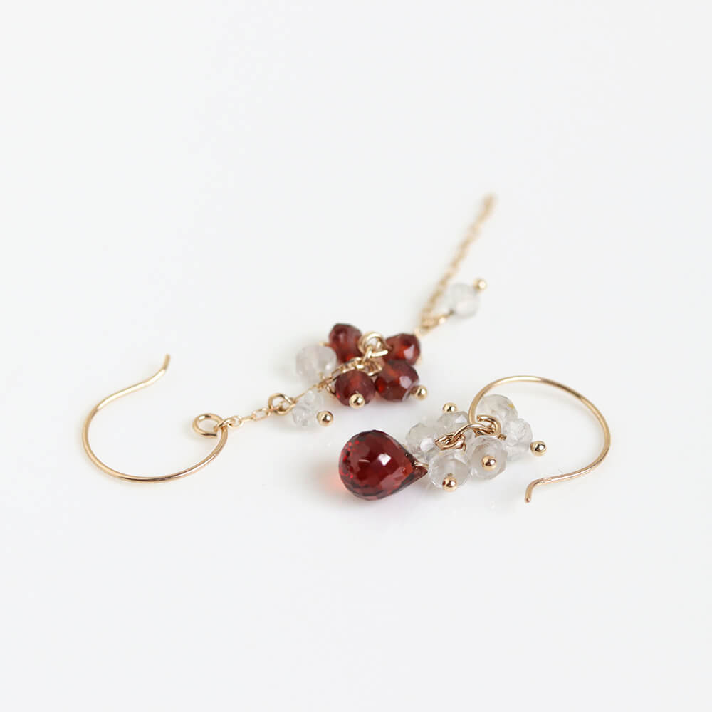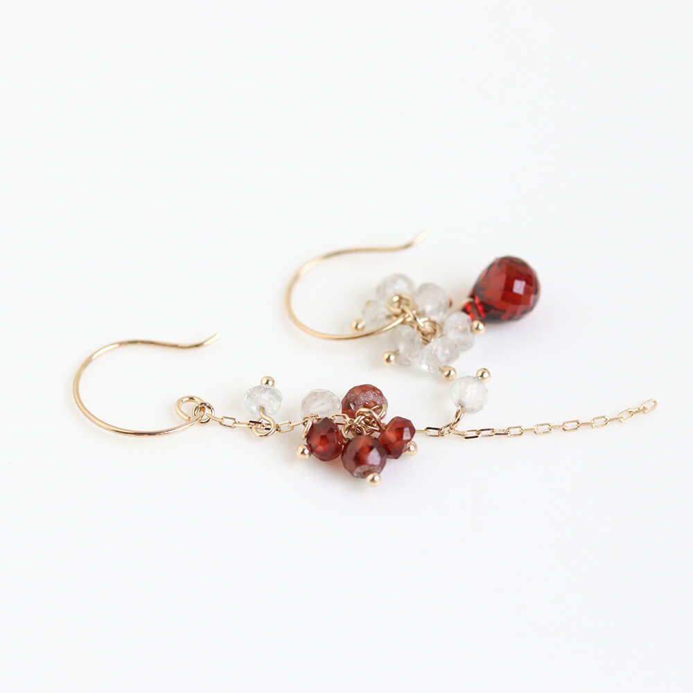 ガーネット / ホワイトトパーズ フック ピアス | K10YG〈Web限定〉