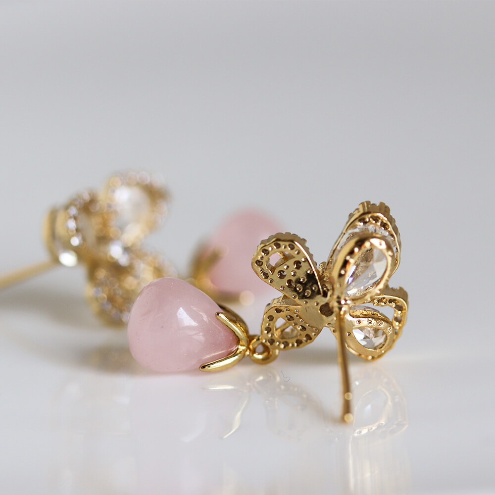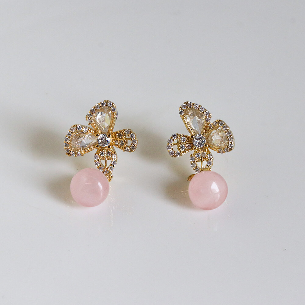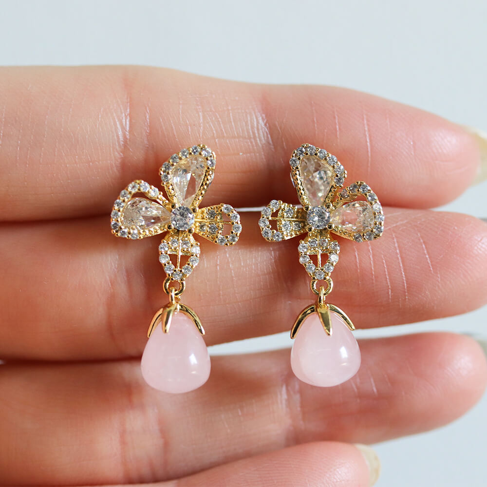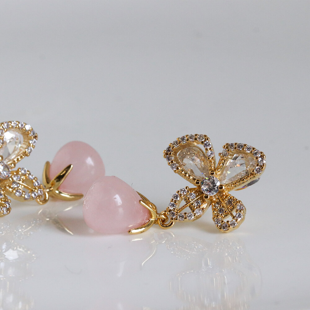 クリスタル / ローズクォーツ フラワー ピアス