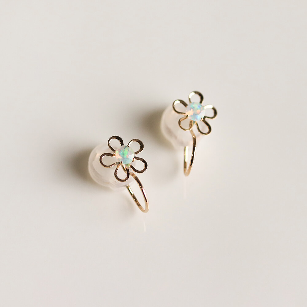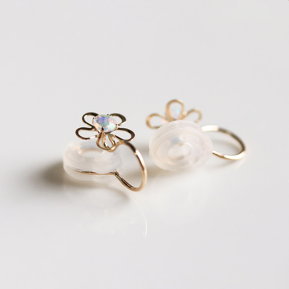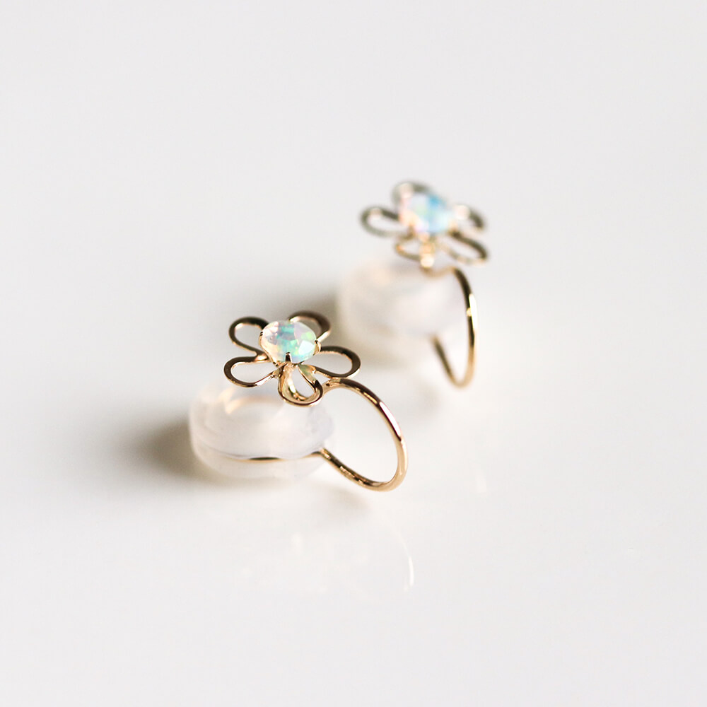 フラワーモチーフにオパールをあしらった、可憐さの中に上品さが漂うイヤリング。