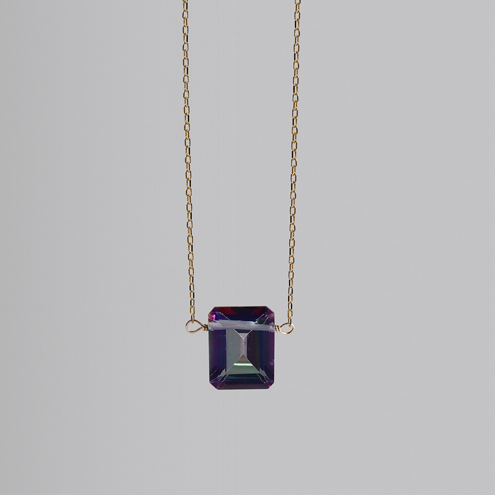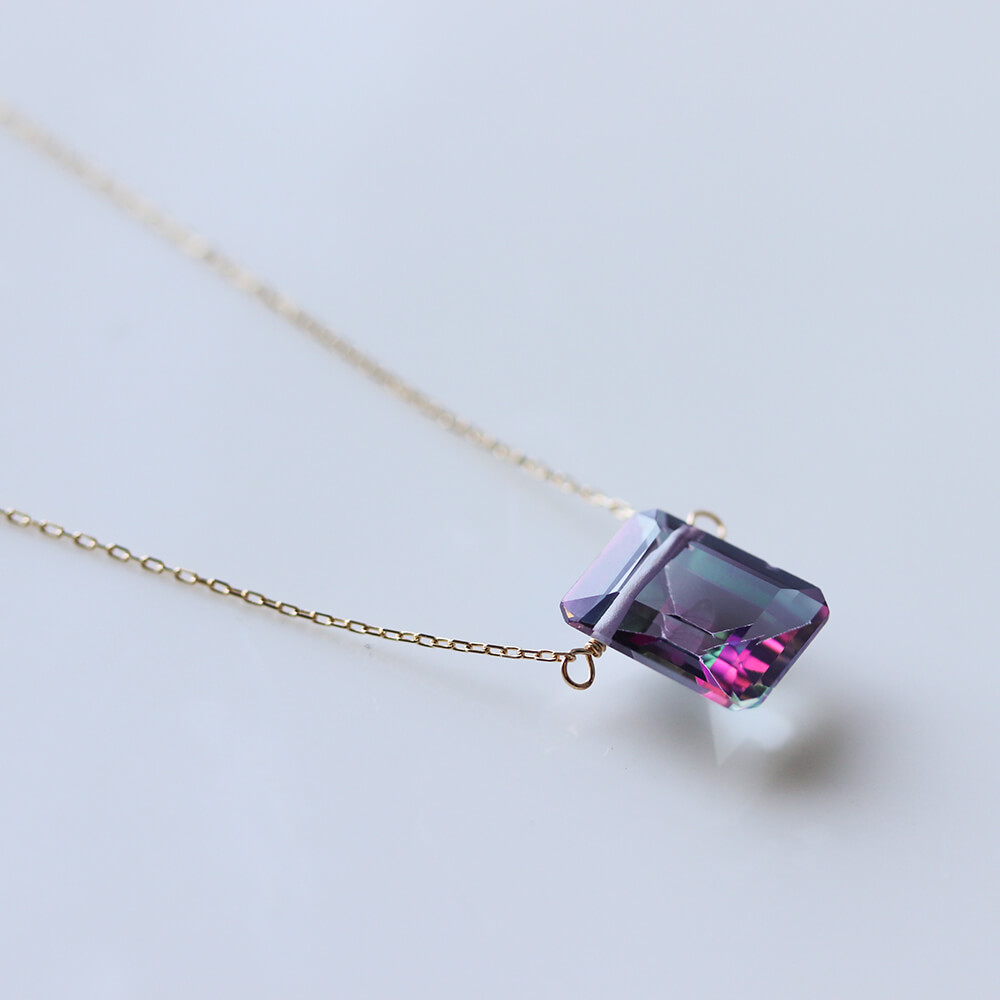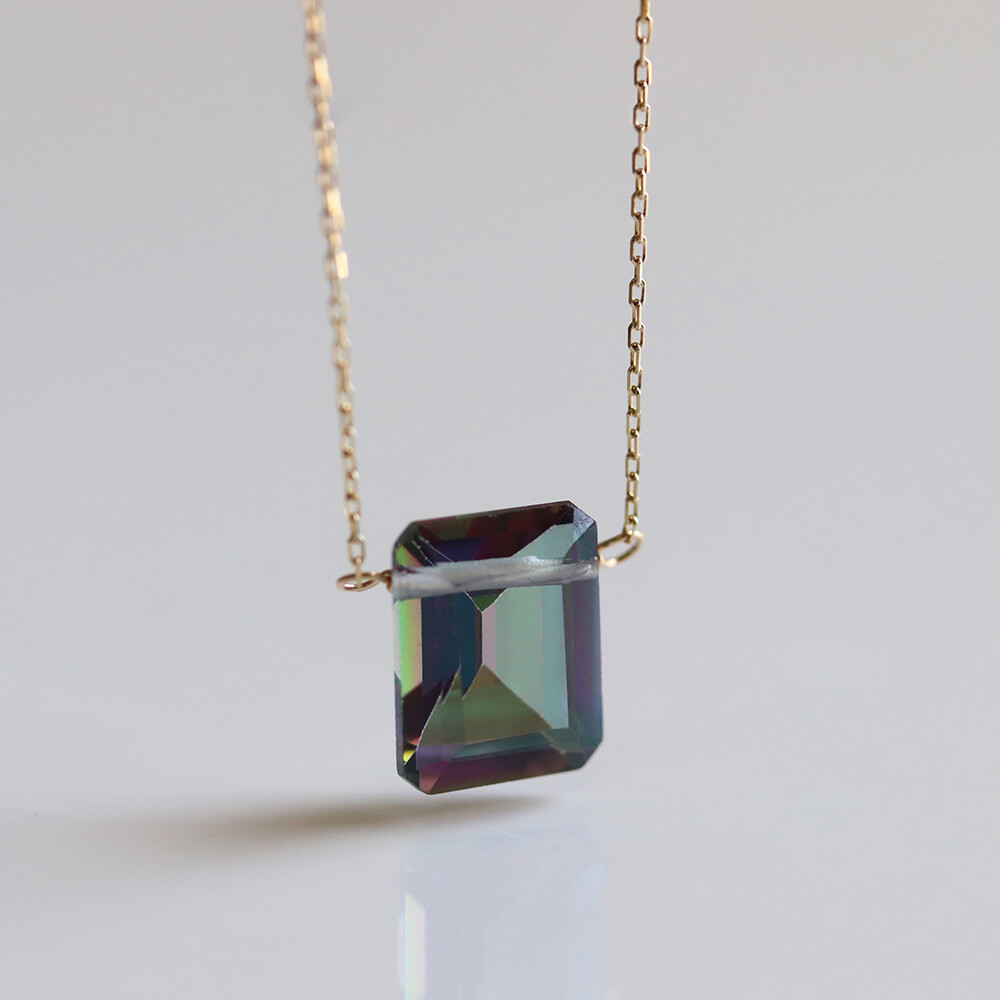 光や視点によって無数の表情を見せるミスティックトパーズネックレス。
