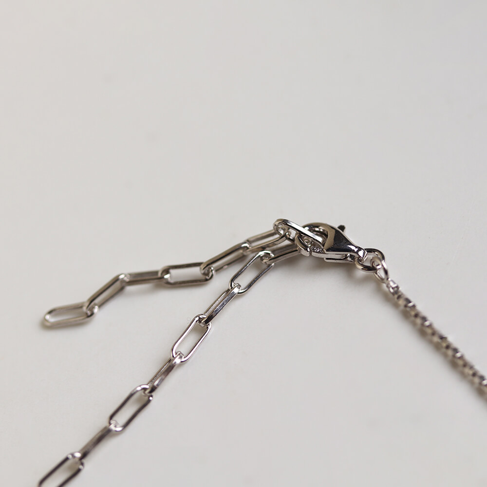軽やかなチェーンで、ゆったりとしたサイズ感のため素肌はもちろんお洋服の上からでも身につけられます。